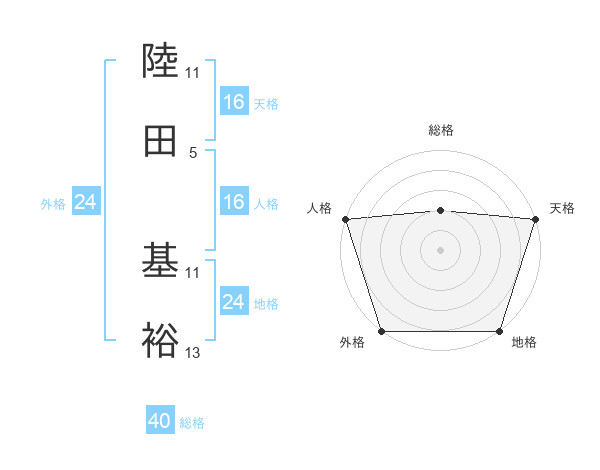 陸田 基裕さんの天格は16画の5点!