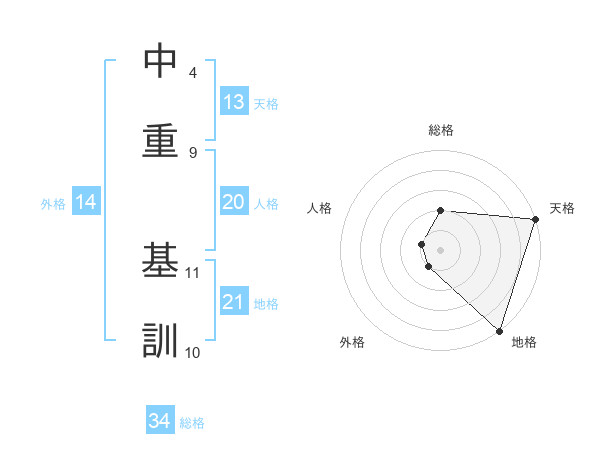 中重 基訓さんの地格は21画の5点!