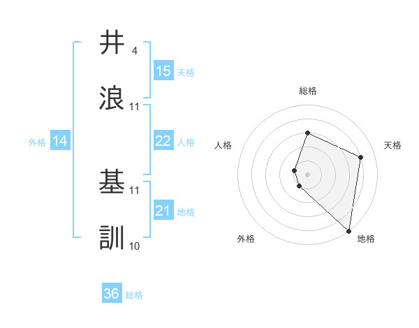井浪 基訓さんの総格は36画の3点!