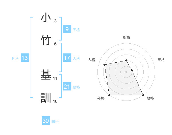 小竹 基訓さんを姓名の画数から五運を鑑定
