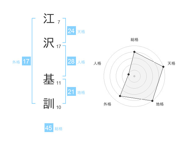 江沢 基訓さんの総格は45画の4点!
