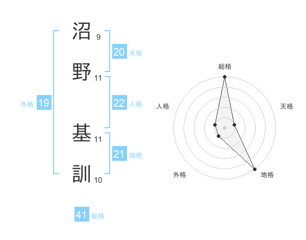 沼野 基訓さんの総格は41画の5点!