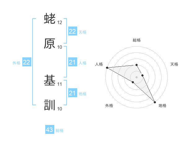 蛯原 基訓さんの総格は43画の2点!