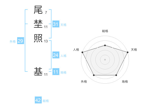尾埜照 基さんの天格は31画の5点!