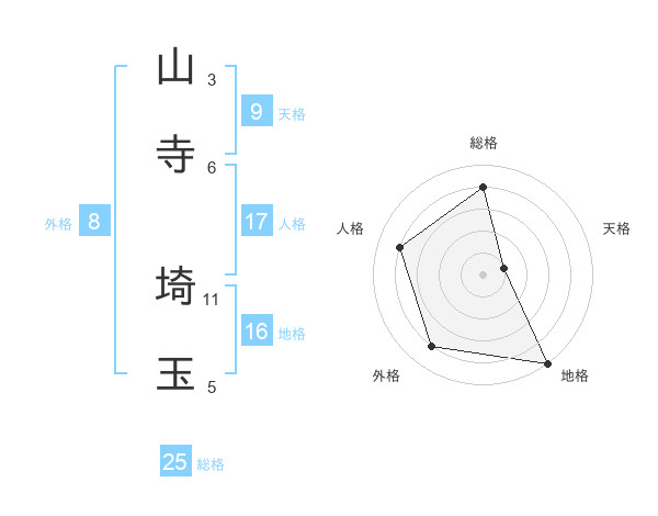 山寺 埼玉さんを姓名の画数から五運を鑑定