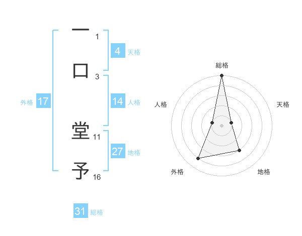一口 堂予さんの総格は31画の5点!