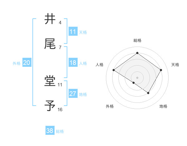 井尾 堂予さんを姓名の画数から五運を鑑定