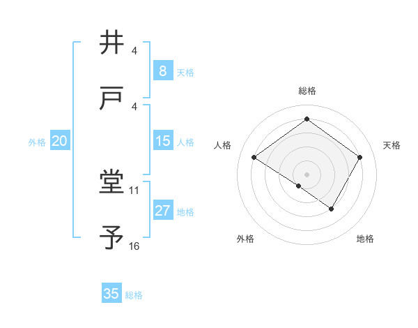 井戸 堂予さんを姓名の画数から五運を鑑定