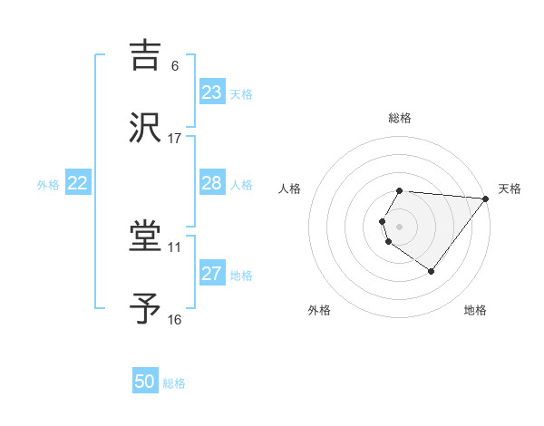 吉沢 堂予さんを姓名の画数から五運を鑑定