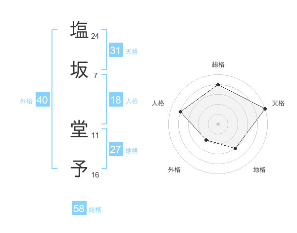 塩坂 堂予さんを姓名の画数から五運を鑑定