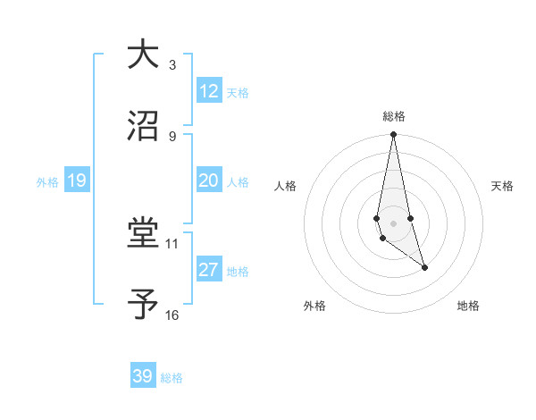 大沼 堂予さんを姓名の画数から五運を鑑定