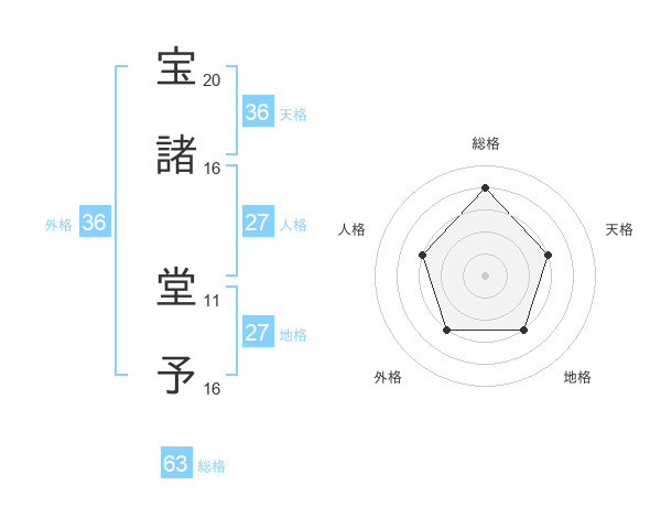 宝諸 堂予さんの総格は63画の4点!