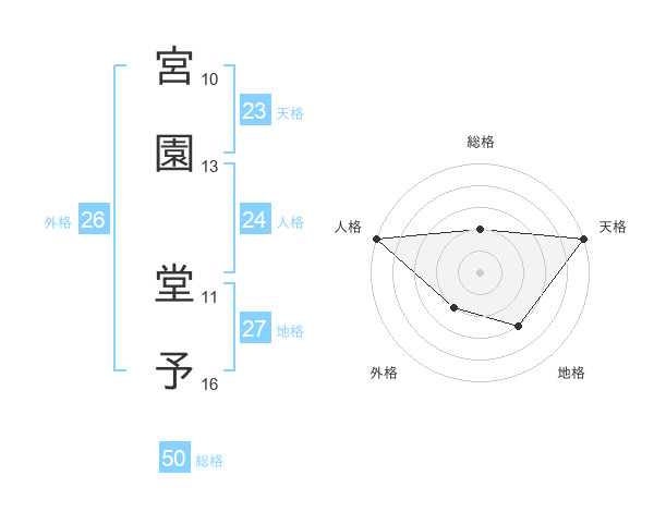 宮園 堂予さんの総格は50画の2点!