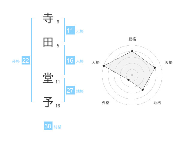寺田 堂予さんを姓名の画数から五運を鑑定