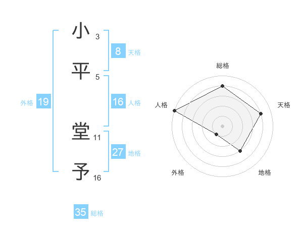 小平 堂予さんを姓名の画数から五運を鑑定
