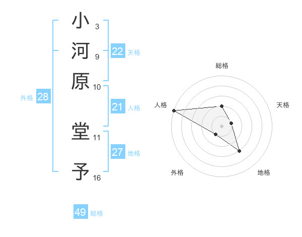 小河原 堂予さんを姓名の画数から五運を鑑定