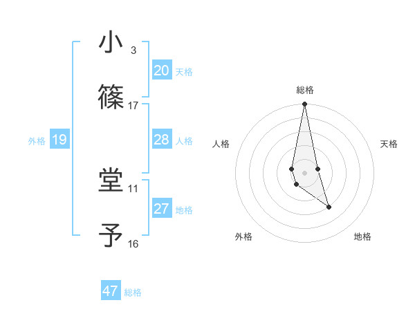 小篠 堂予さんの総格は47画の5点!