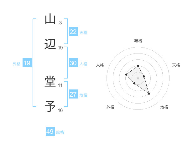 山辺 堂予さんの天格は22画の1点!