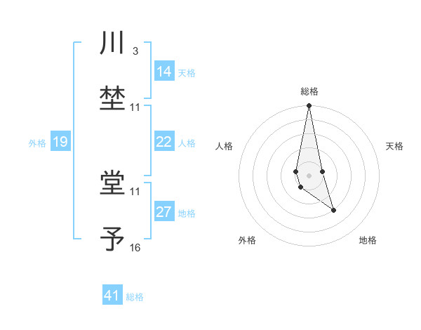 川埜 堂予さんの総格は41画の5点!