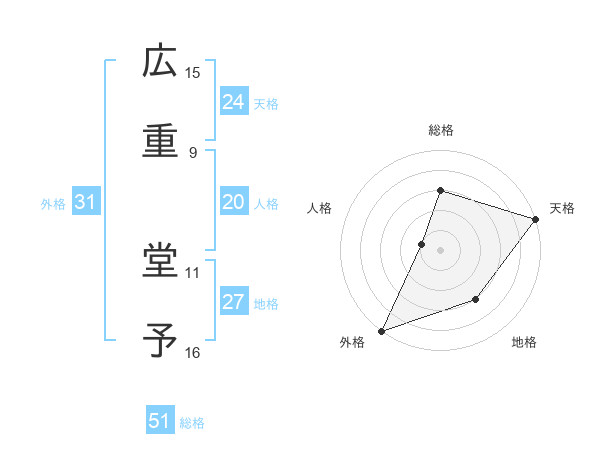 広重 堂予さんの総格は51画の3点!
