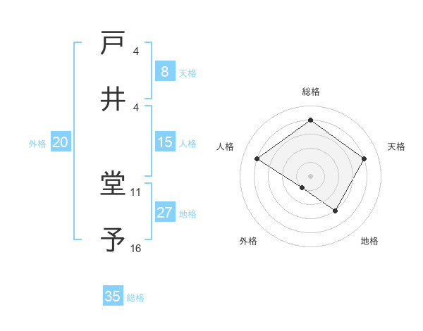 戸井 堂予さんの総格は35画の4点!