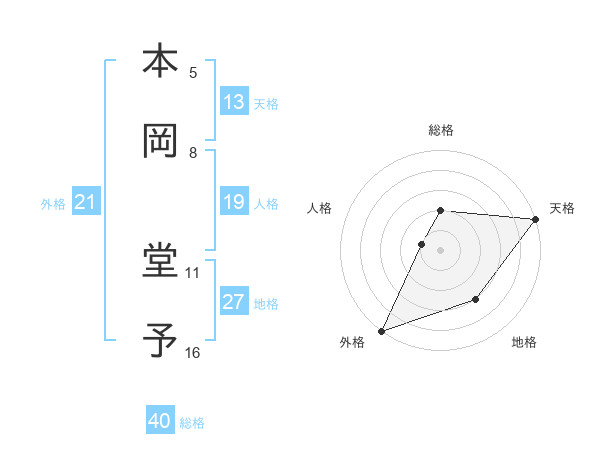 本岡 堂予さんを姓名の画数から五運を鑑定