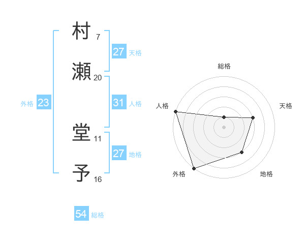 村瀬 堂予さんを姓名の画数から五運を鑑定