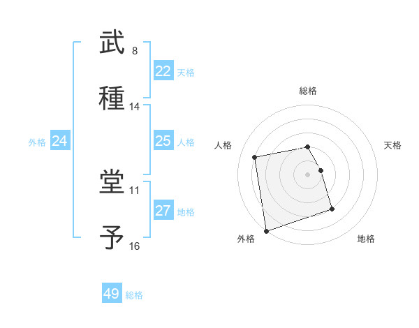 武種 堂予さんの総格は49画の2点!