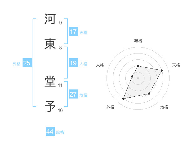 河東 堂予さんを姓名の画数から五運を鑑定