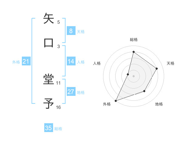 矢口 堂予さんの総格は35画の4点!