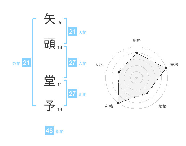 矢頭 堂予さんを姓名の画数から五運を鑑定