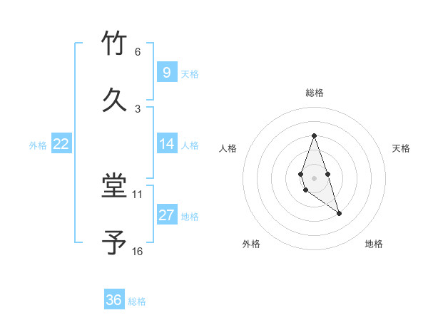 竹久 堂予さんの総格は36画の3点!