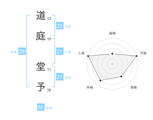 道庭 堂予さんの天格は23画の5点!