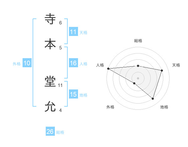 寺本 堂允さんを姓名の画数から五運を鑑定