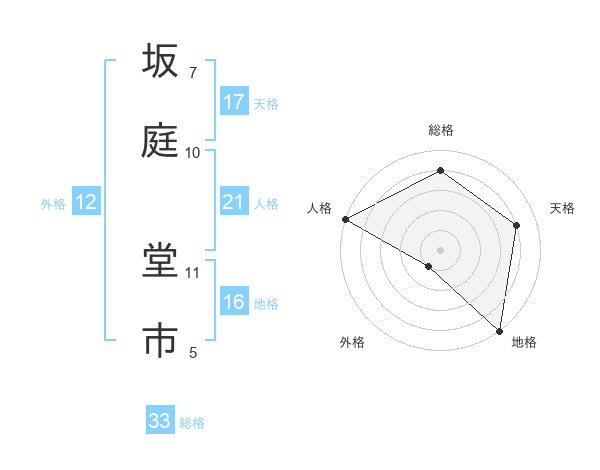 坂庭 堂市さんを姓名の画数から五運を鑑定