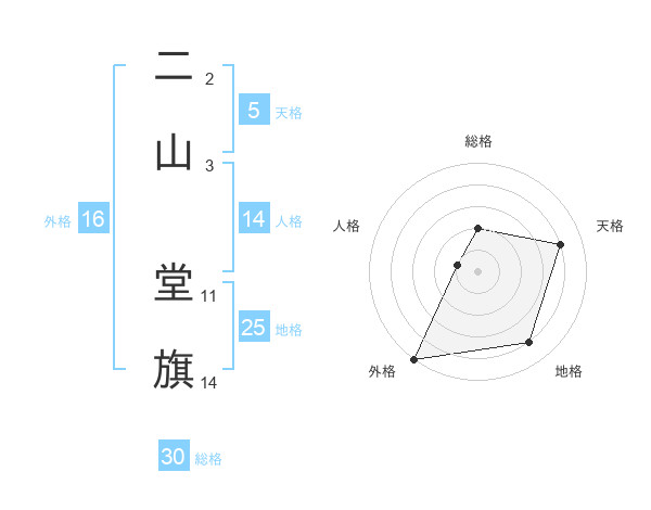 二山 堂旗さんの外格は16画の5点!