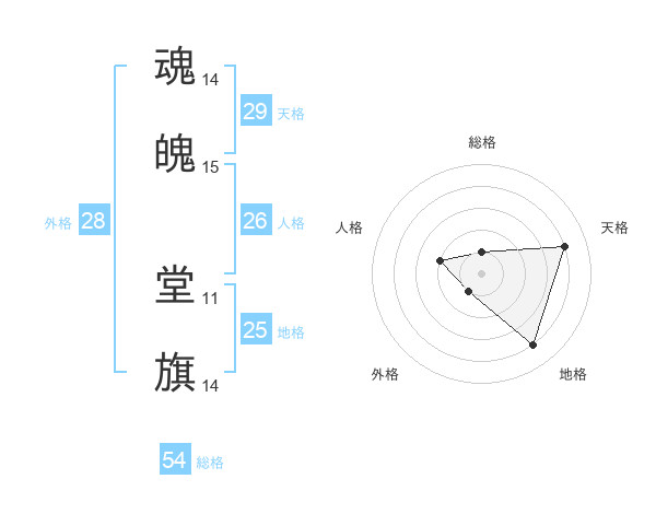 魂魄 堂旗さんを姓名の画数から五運を鑑定