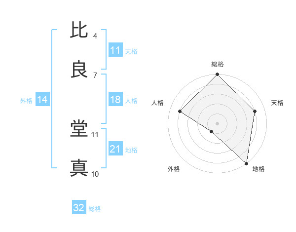 比良 堂真さんの総格は32画の5点!