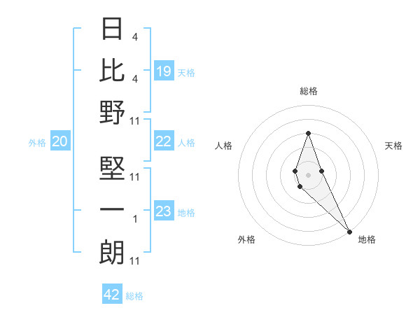 日比野 堅一朗さんを姓名の画数から五運を鑑定