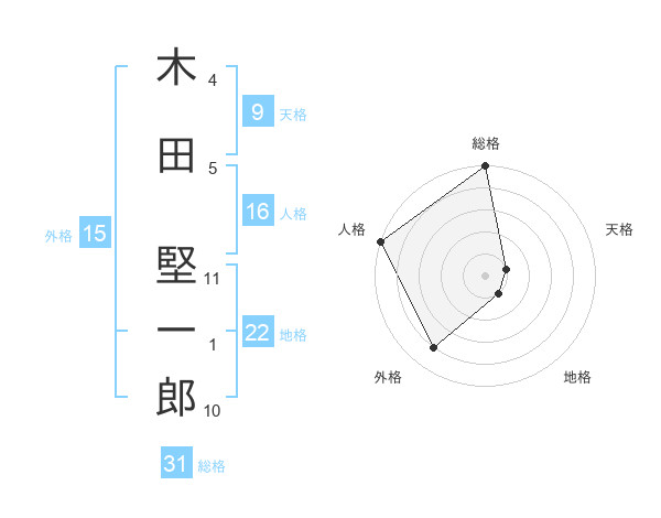 木田 堅一郎さんの総格は31画の5点!