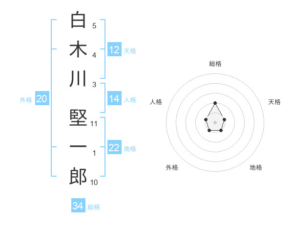白木川 堅一郎さんを姓名の画数から五運を鑑定