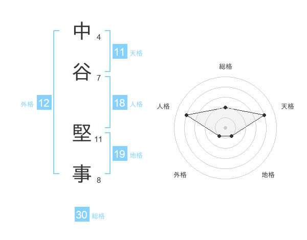 中谷 堅事さんの天格は11画の4点!