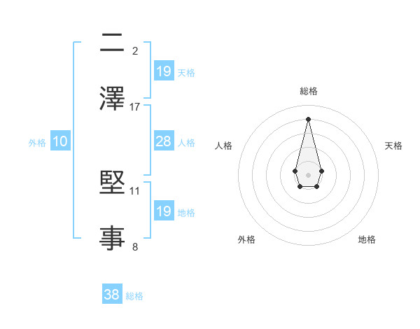 二澤 堅事さんを姓名の画数から五運を鑑定
