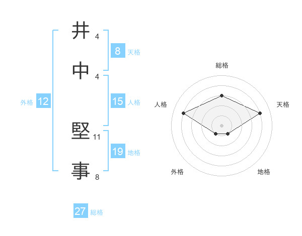 井中 堅事さんの総格は27画の3点!