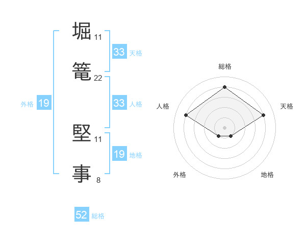 堀篭 堅事さんを姓名の画数から五運を鑑定