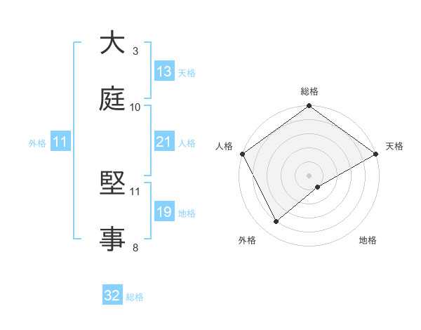 大庭 堅事さんの天格は13画の5点!