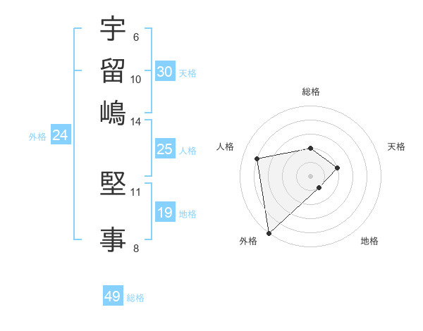 宇留嶋 堅事さんを姓名の画数から五運を鑑定