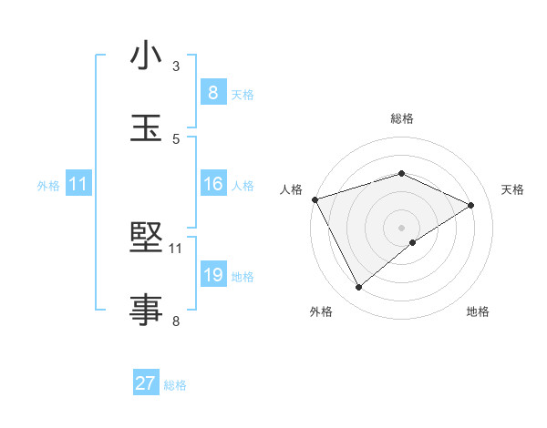 小玉 堅事さんを姓名の画数から五運を鑑定