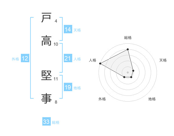 戸高 堅事さんを姓名の画数から五運を鑑定