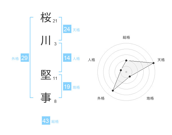 桜川 堅事さんの天格は24画の5点!